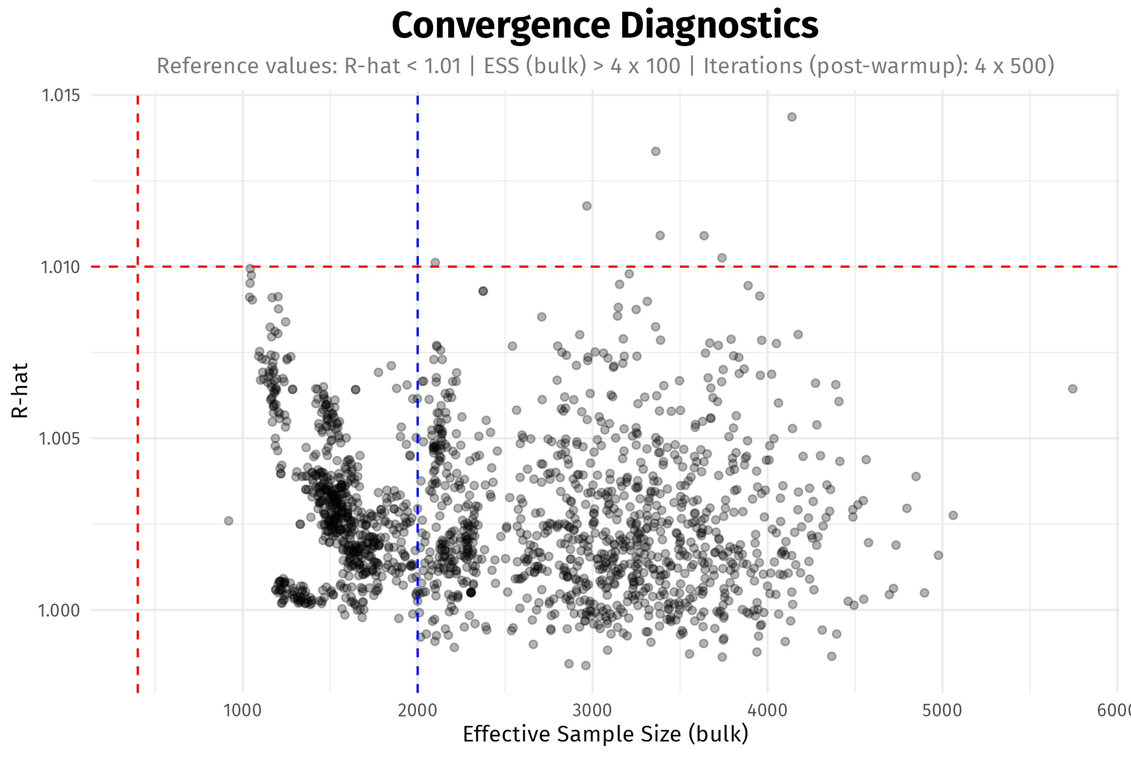 subtitle = "Reference values: R-hat < 1.01 | ESS (bulk) > 4 x 100 | Iterations (post-warmup): 4 x 500)",